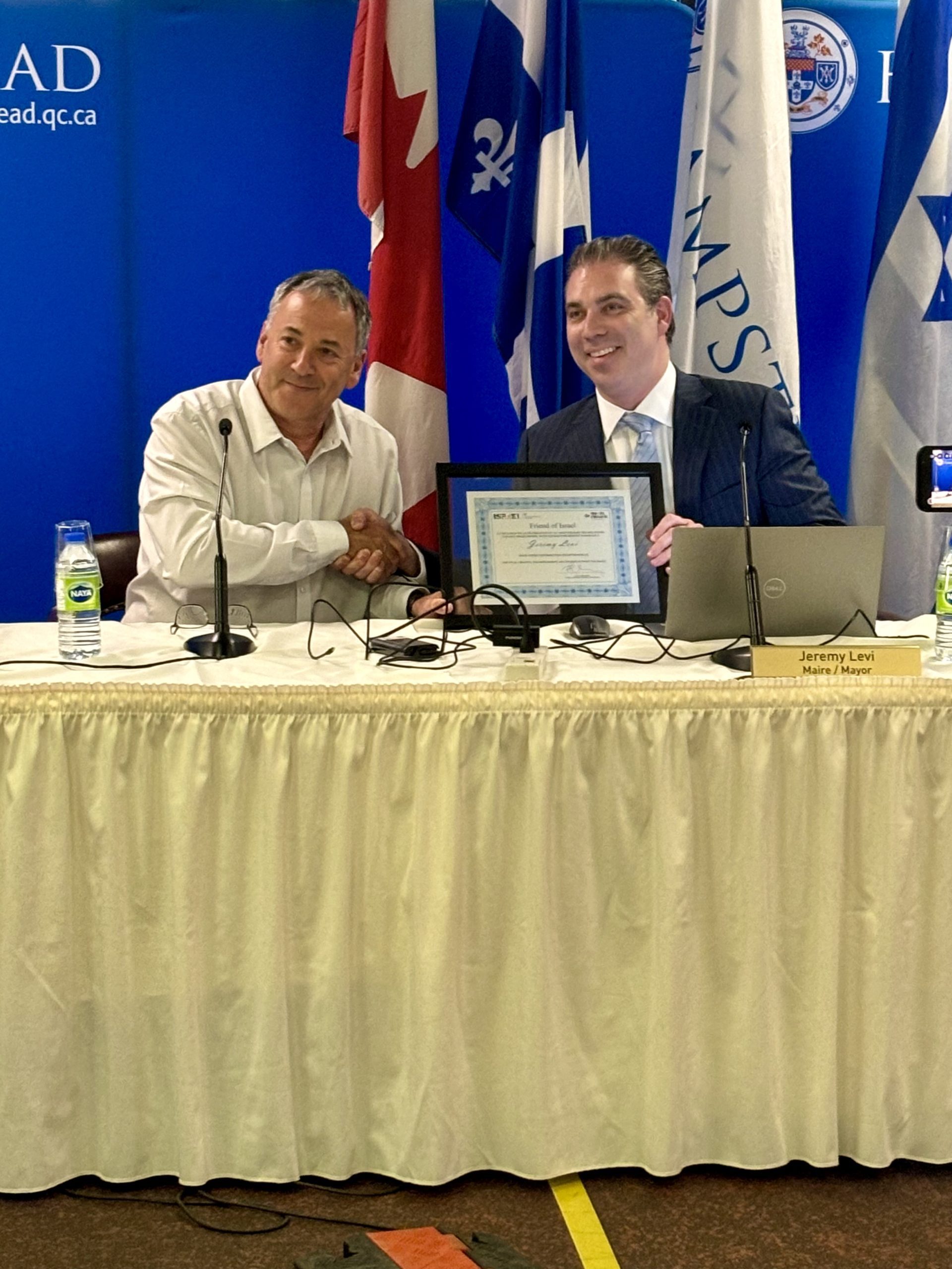 The Town of Hampstead had the distinguished honour of hosting the Consul of Israel, Paul Hirshson, during last night’s council meeting. In response to the alarming resurgence of antisemitism, he addressed the Hampstead community to convey his profound gratitude for their unwavering support. He also paid tribute to our mayor, Jeremy Levi, for his outstanding contributions in recent months.